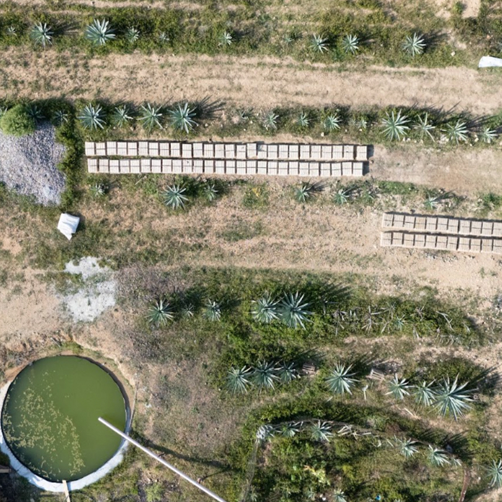 Traditional mezcal production generates large quantities of vinasse and bagasse that have long been discarded without use. In Las Milpas, this alliance redefined that equation—transforming 2,860 liters of vinasse and 525 kilograms of bagasse into 2,552 Agablocks: a high-performance regenerative material that eliminates waste and turns it into building solutions for the community itself.
